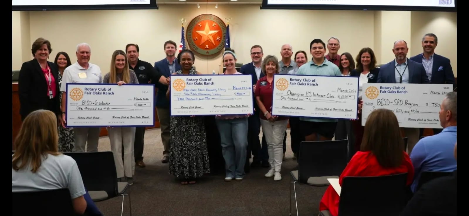 Fair Oaks ranch Rotarians presented a $2500 check to Meals on Wheels Kendall County located at The Center in Boerne.